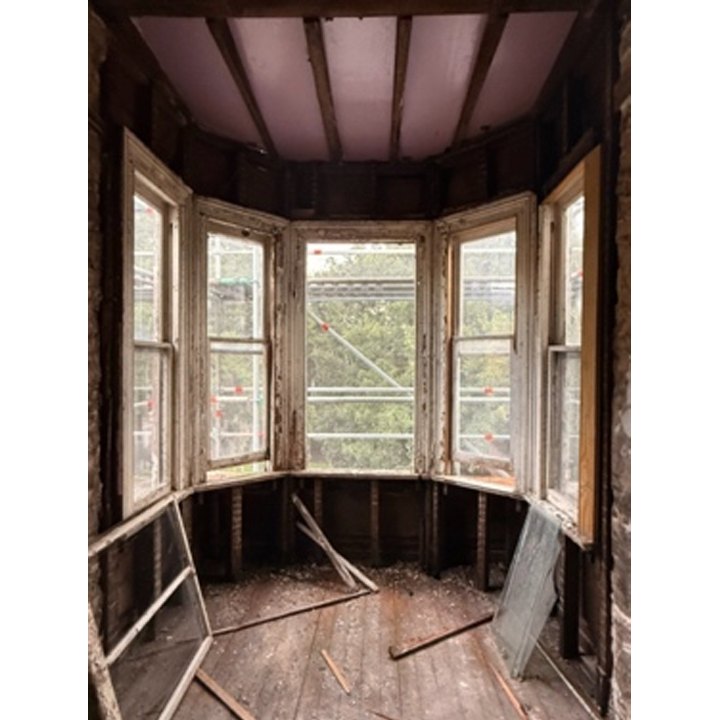 Comprehensive renovation honoring original craftsmanship — including façade repair, window restoration, and historically accurate masonry and stucco work.